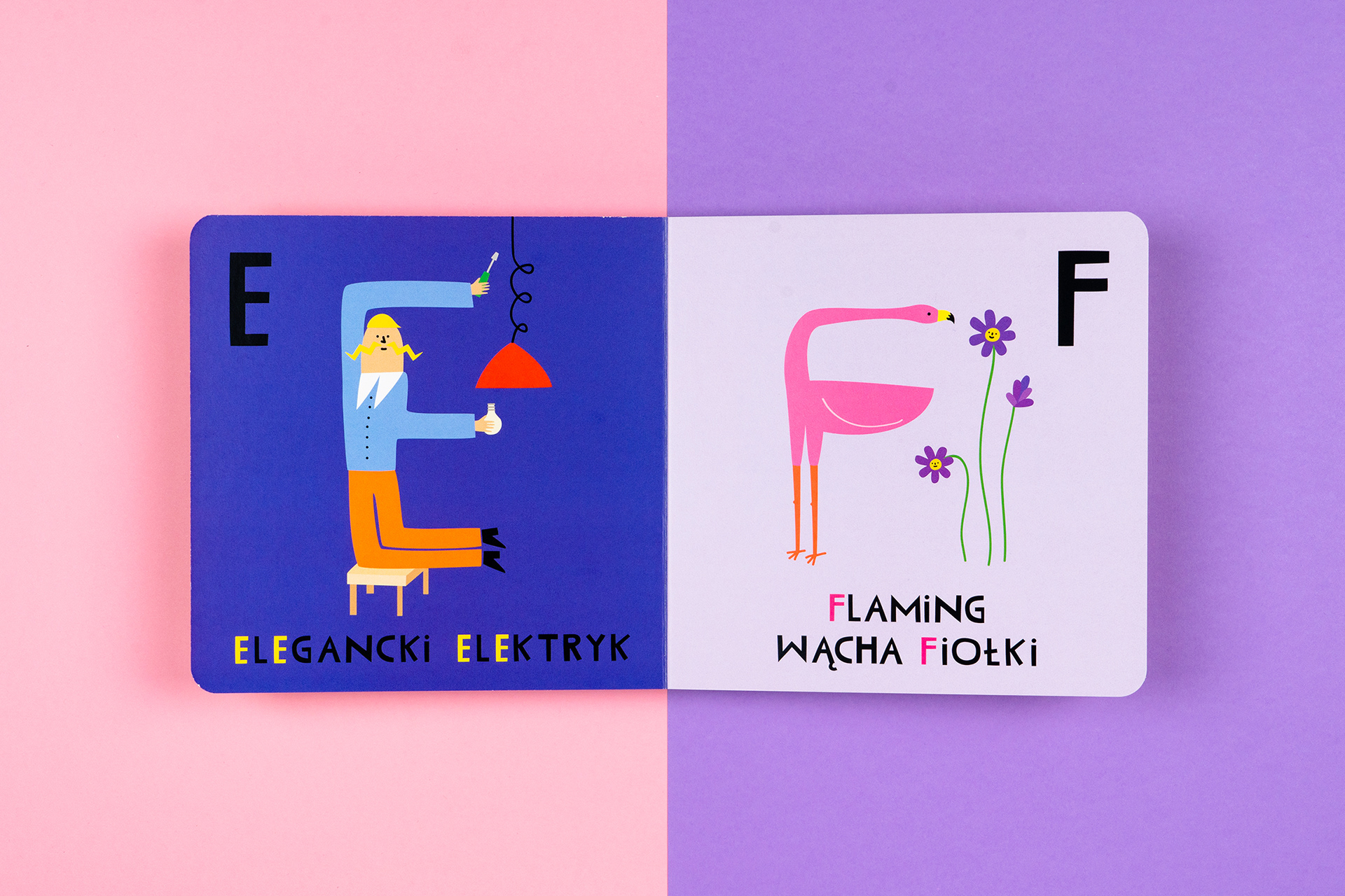 Książka Dwa, trzy, cztery – słowa i litery zapoznaje dzieci z alfabetem, w którym zamieszkały słowotwory. Litery kryją się w słowach prostych i znanych najmłodszym czytelnikom, a czasem tworzą długie i skomplikowane wyrazy. Znaczenia słów przybierają kształty kolejnych liter. Tak powstają słowotwory, które – chcąc pomóc dzieciom w poznawaniu i zapamiętywaniu wszystkich literek – wyczyniają akrobacje, wypychają do przodu brzuchy albo zakładają pstrokatą piżamę.